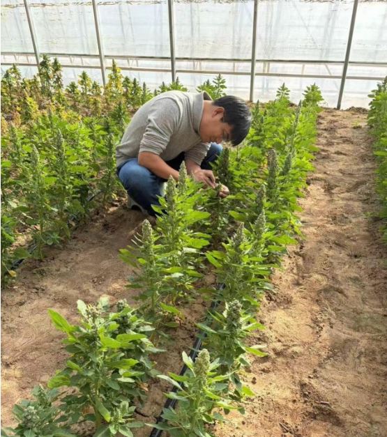 除了常規(guī)水肥管理與病蟲(chóng)害防控,溫室更重要的日常工作是科研?!坝N不是看一眼就能下結(jié)論,必須把每一株、每一代的變化都用數(shù)據(jù)說(shuō)清楚。在藜麥生長(zhǎng)的關(guān)鍵時(shí)期,記錄株型、穗型、抗性表現(xiàn)等數(shù)據(jù)非常重要,還要采集基因樣本用于測(cè)定與分析,為后續(xù)選擇提供依據(jù)?!闭τ谌斯とバ垭s交工作的技術(shù)總監(jiān)賀培洋說(shuō)。