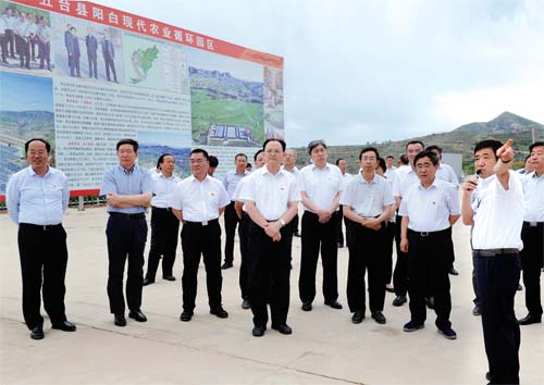 圖為省人大常委會(huì)副主任、市委書記李俊明帶領(lǐng)觀摩人員在五臺(tái)縣特色農(nóng)業(yè)產(chǎn)業(yè)扶貧陽白現(xiàn)代農(nóng)業(yè)循環(huán)園區(qū)聽取情況介紹。本報(bào)記者 劉紀(jì)森 攝