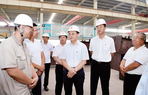 圖為省人大常委會(huì)副主任、市委書記李俊明在原平經(jīng)濟(jì)技術(shù)開(kāi)發(fā)區(qū)興盛機(jī)械公司調(diào)研。(本報(bào)記者 劉紀(jì)森 攝)