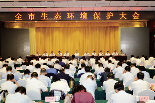 圖為全市生態(tài)環(huán)境保護大會會場。本報記者 范濤 攝