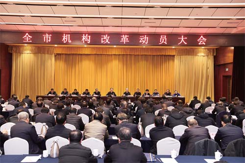 會議指出,要充分認識深化黨和國家機構(gòu)改革的重大意義,增強推進機構(gòu)改革工作的思想自覺、政治自覺和行動自覺。深化黨和國家機構(gòu)改革是黨中央作出的重大決策部署,是推進國家治理體系、治理能力現(xiàn)代化的一場深刻變革,要充分認識推動這場改革的歷史現(xiàn)實必然性,準確把握這次改革的正確方向和著力點,堅持自覺推動機構(gòu)改革工作的政治擔當。我市機構(gòu)改革的工作重點已經(jīng)進入到抓組織實施的重要階段,當前又處歲末年初,頭緒多、任務重、時間緊。做好全市機構(gòu)改革工作,既是一項重大政治任務,也是一次重大政治考驗。各級黨委(黨組)要將其作為頭等大事來謀劃組織落實推動,全市各級各部門要提高政治站位,統(tǒng)一思想認識,牢記“四個意識”,堅定“四個自信”,做到“兩個維護”,領導干部特別是“一把手”既要掛帥又要出征,強化責任擔當,狠抓任務落實,確保改革落地。