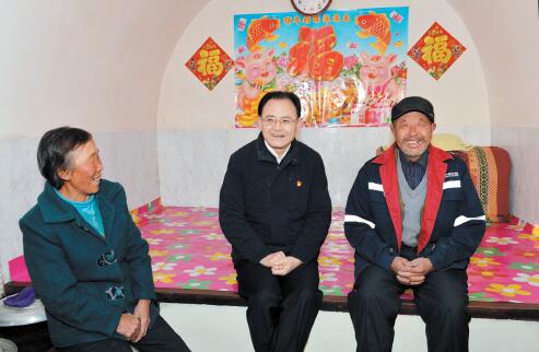 圖為省人大常委會副主任、市委書記李俊明在偏關(guān)縣新關(guān)鎮(zhèn)高家上石會村高長后家了解增收脫貧情況。本報(bào)記者 宮愛文攝