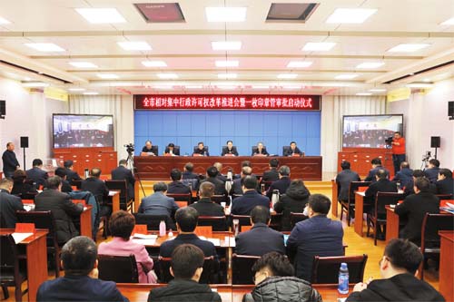 圖為全市相對(duì)集中行政許可權(quán)改革推進(jìn)會(huì)會(huì)場(chǎng)。本報(bào)記者 范濤 攝