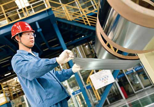 山西堅定貫徹落實習(xí)近平總書記關(guān)于創(chuàng)新驅(qū)動、科教興國、人才強國的重大戰(zhàn)略思想,手撕鋼、碳纖維、碳化硅等技術(shù)創(chuàng)新取得重大突破。圖為太鋼集團生產(chǎn)車間正生產(chǎn)手撕鋼。該公司2018年研發(fā)的寬幅精密帶鋼箔材(厚度0.02毫米,寬640毫米)成為世界首創(chuàng),因其厚度不到頭發(fā)直徑的1/3、比A4紙還要薄、可以用手輕易撕開,被形象地稱為“手撕鋼”。 山西省委宣傳部供圖