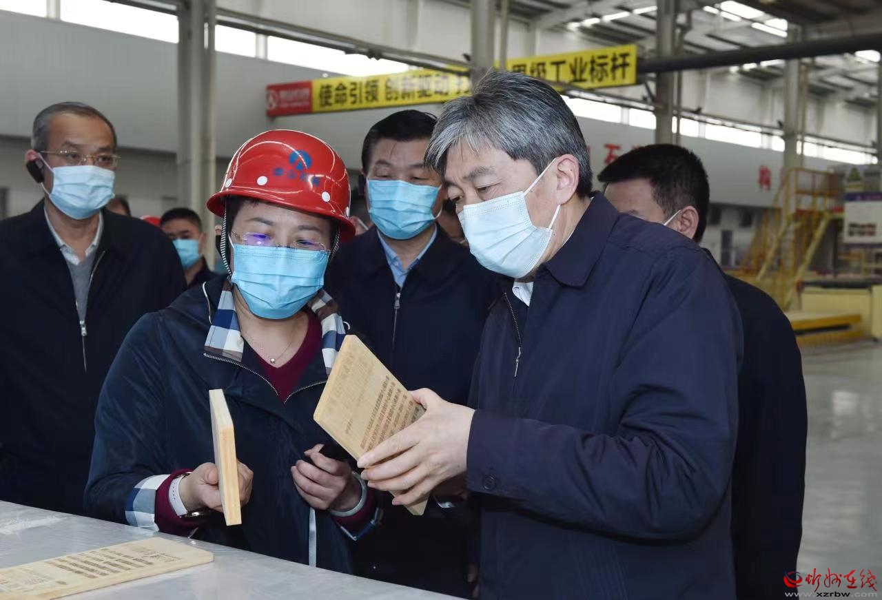 泰山石膏忻州有限公司產(chǎn)銷量均居同行業(yè)首位,被譽為中國紙面石膏板行業(yè)的領(lǐng)跑者。朱曉東深入企業(yè)車間宣講黨的二十屆二中全會和習(xí)近平總書記在全國兩會期間重要講話及全國兩會精神,聽取負責(zé)人工作匯報,詳細了解項目建設(shè)、企業(yè)生產(chǎn)經(jīng)營、產(chǎn)品研發(fā)、安全生產(chǎn)等方面的情況。他指出,要把學(xué)習(xí)貫徹黨的二十屆二中全會精神與學(xué)習(xí)宣傳貫徹黨的二十大精神結(jié)合起來,與貫徹落實全國兩會精神結(jié)合起來,在學(xué)深悟透、宣講培訓(xùn)、知行合一上持續(xù)用力,深刻理解和準確把握習(xí)近平總書記關(guān)于“牢牢把握高質(zhì)量發(fā)展這個首要任務(wù)”和“四個必須”的重要論述,深入落實“三個更好統(tǒng)籌”,確保黨的二十大精神在忻州落地生根、開花結(jié)果。