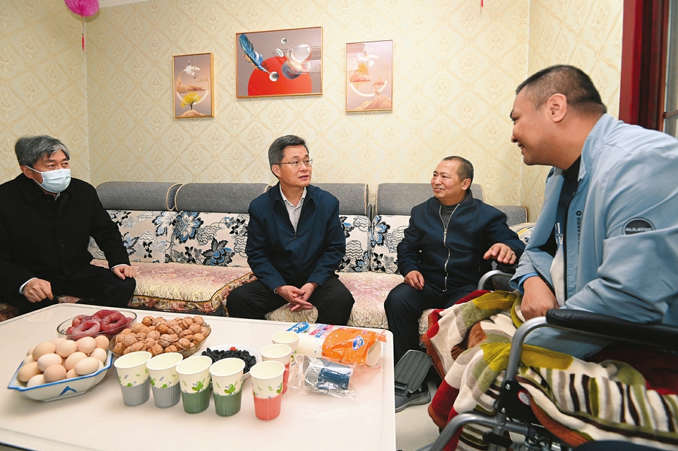 易地搬遷不僅讓群眾挪了窮窩、住上新房,更讓大家的精神面貌煥然一新。郝生偉、郝華君父子二人有不同程度殘疾,面對生活依然樂觀向上。藍佛安入戶了解他們的身體、生活狀況和享受救助政策情況。父子倆看到省委書記來了,你一言我一語表達著對黨和政府的感激之情。聽到郝華君希望開一間網(wǎng)店,力所能及地回報社會時,藍佛安高興地點贊。他動情地說,共產(chǎn)黨就是給人民辦事的,黨和政府始終是人民群眾的堅強依靠。大家在脫貧攻堅的路上沒有掉隊,在奔向現(xiàn)代化和共同富裕的路上,黨和政府也一定不會讓大家掉隊!藍佛安指出,社區(qū)黨員干部要厚植為民情懷,多關心弱勢群體,拿出更多針對性幫扶舉措,解決好群眾的急難愁盼問題,讓大家生活有靠、日子有盼、發(fā)展有機會。他強調(diào),要進一步完善黨建引領社區(qū)治理機制,建強服務陣地,更好地把政治優(yōu)勢、組織優(yōu)勢轉化為治理效能,以社區(qū)“微治理”撬動民生“大幸?!?。