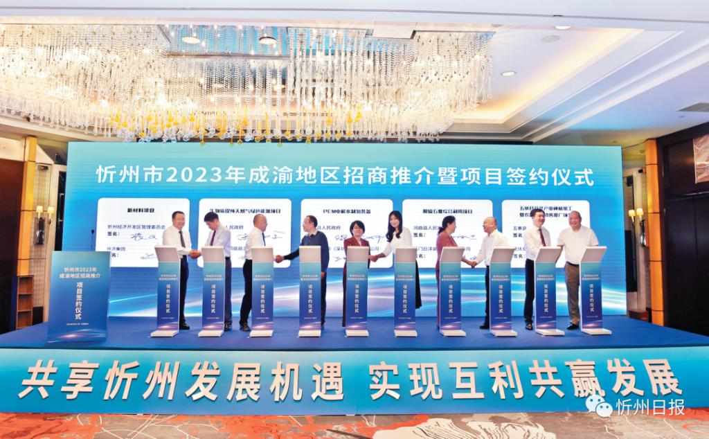 5月27日,忻州市2023年成渝地區(qū)招商推介暨項(xiàng)目簽約儀式在重慶市舉行,朱曉東出席活動(dòng)并講話,市政府黨組成員王建峰致歡迎辭并作主旨推介。與會(huì)人員共同觀看了忻州市宣傳片,重慶市山西商會(huì)會(huì)長屈朝輝、重慶市民營超市商會(huì)會(huì)長康建銀和部分簽約項(xiàng)目及意向投資企業(yè)代表作了發(fā)言,大家對(duì)近年來忻州市在擴(kuò)大招商引資、壯大外向型經(jīng)濟(jì)方面取得的成績(jī)給予高度評(píng)價(jià),并表示將一如既往支持忻州市與成渝地區(qū)的交流合作和項(xiàng)目對(duì)接,共享商機(jī)、共贏未來。會(huì)上,還為校友招商引才基地進(jìn)行了授牌,為招商大使頒發(fā)了聘書。