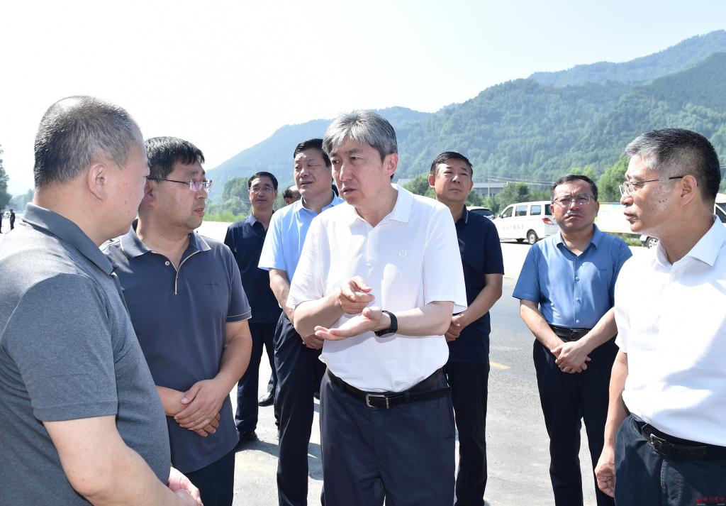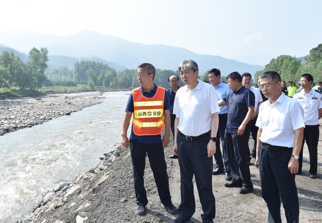朱曉東先后來到滄榆高速忻阜段阜平方向K285+500處、金崗庫鄉(xiāng)蛤蟆石村、石咀鎮(zhèn)污水廠橋等地,認真聽取有關工作匯報,實地察看塌陷路段搶修進展情況,詳細了解道路通行、交通安全隱患風險點排查、防汛排澇準備、河道行洪安全、地質災害防范等情況,并提出工作要求。