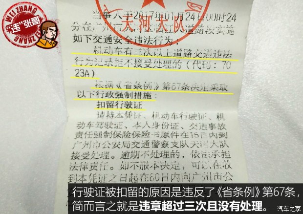 “違”張哥這個(gè)系列的選題原本都是我的同事張欣在更新,而我(廣州分站編輯陳海傭)平時(shí)很少寫(xiě)用車(chē)類文章,但每次只要寫(xiě)就說(shuō)明我又?jǐn)偵鲜铝?。這次比較尷尬,在春節(jié)放假前夕,因?yàn)檫`章過(guò)多被交警扣留行駛證。表面是把違章處理完就能拿回行駛證,可沒(méi)想到整個(gè)過(guò)程竟是如此一波三折,很多細(xì)節(jié)需要注意。據(jù)統(tǒng)計(jì),在今年春節(jié)期間,就有超過(guò)220萬(wàn)多條違章產(chǎn)生,不知道大家有沒(méi)有中招。如果有并且違章次數(shù)超過(guò)三次,那就要特別注意了,也希望我這次親身經(jīng)歷的分享能夠給大家一些啟發(fā)。