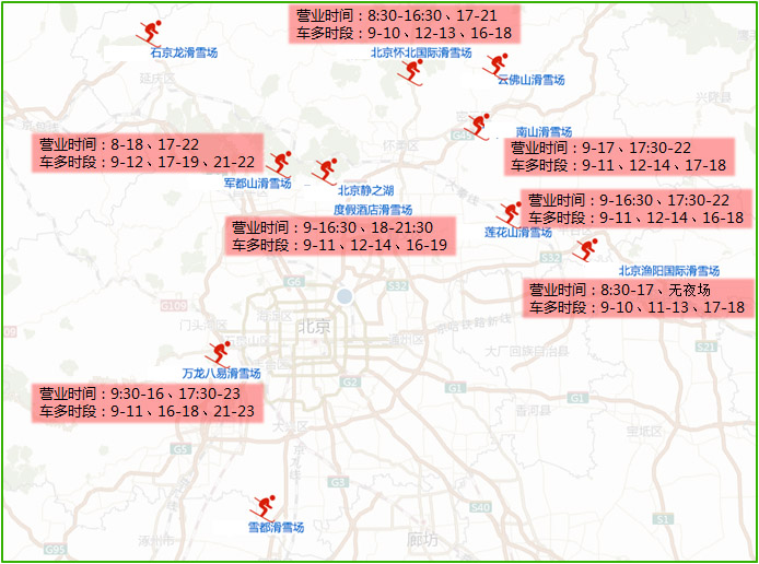 隨著冬奧會臨近,冰雪運動也在逐年升溫。北京周邊的南山、軍都山、漁陽等滑雪場不管在周末假期還是冬季的其他假期都會吸引大量愛好者。滑雪者多數(shù)會選擇駕車前往,滑雪場周邊道路車流量較大,特別是近城區(qū)的幾個滑雪場熱度較高,9時至10時、12至14時、16至18時三個時段,周邊道路的車輛最多,交通壓力最大。