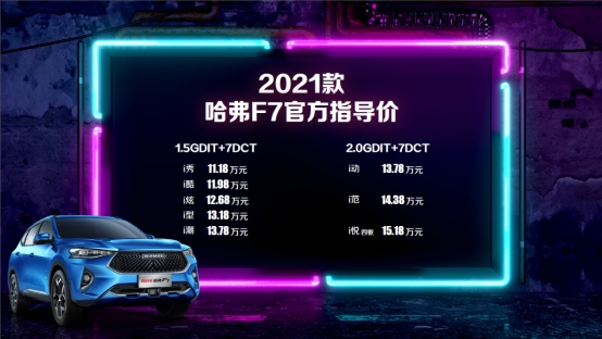 2021款哈弗F7共發(fā)布包括i秀、i酷以及i潮等8個(gè)版本,廠商指導(dǎo)價(jià)區(qū)間為11.18萬(wàn)元——15.18萬(wàn)元;2021款哈弗F7x上市發(fā)布共計(jì)6個(gè)版本,廠商指導(dǎo)價(jià)區(qū)間為11.99萬(wàn)元——15.49萬(wàn)元。為讓更多用戶共享出行智慧生活,2021款哈弗F7/F7x同步通過(guò)“五大上新”以及“Fun-Life 2.0系統(tǒng)”和“12.3寸中控顯示大屏”兩大全系標(biāo)配,實(shí)現(xiàn)智能化再進(jìn)階。
