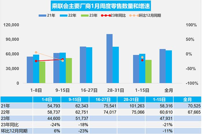 中新網(wǎng)1月18日電 據(jù)乘聯(lián)會(huì)公眾號(hào)18日消息,1月1-15日,乘用車市場(chǎng)零售71.9萬輛,同比去年下降21%,較上月同期下降11%;全國(guó)乘用車廠商批發(fā)65.9萬輛,同比去年下降20%,較上月同期下降11%。