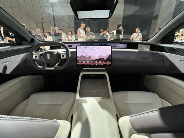 新車(chē)內(nèi)部配備“云境環(huán)擁式感應(yīng)座艙”,采用尺寸達(dá)到35.4英寸的4K全景寬屏,兩側(cè)配有流媒體后視鏡顯示區(qū)域,中央部位可顯示多項(xiàng)駕駛信息。另外,該車(chē)還配備一塊15.6英寸中控屏幕與造型新穎的多功能方向盤(pán)。細(xì)節(jié)部分,阿維塔12在座艙內(nèi)部使用大量Nappa真皮材質(zhì)進(jìn)行包覆,并配備超柔觸感類(lèi)麂皮精致頂棚,整體極具質(zhì)感。