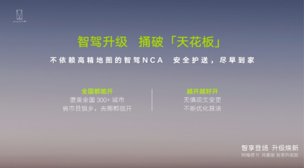 伴隨著阿維塔11鴻蒙版智享升級款的上市,阿維塔“去高精地圖化”智駕時代正式開啟,打破“按圖索驥”束縛,完美彌補(bǔ)當(dāng)下高精地圖智駕方案的不足并解鎖更多高頻智駕場景,城區(qū)NCA智駕功能即將一次性解鎖超過300個城市,帶來“全國都能開、 全國都好開”的出行體驗。