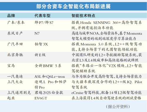在業(yè)內(nèi)人士看來(lái),這并非偶然。從時(shí)間軸上看,在經(jīng)歷了多年“上車?yán)щy”、研發(fā)成本高等轉(zhuǎn)型陣痛后,合資車企通過(guò)加快步伐,與本土科技企業(yè)合作,開始在高階智能駕駛領(lǐng)域迎頭趕上,縮小與自主品牌的差距?!皬碾妱?dòng)車到燃油車,從智駕系統(tǒng)到‘大彩電’,合資車企的智電轉(zhuǎn)型正在提速?!?/p>