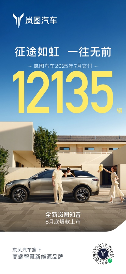 MPV+SUV雙品類熱銷!嵐圖汽車7月交付12135輛 全新知音8月底上市