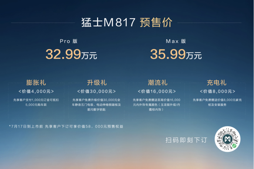 新華網(wǎng)7月19日電(記者 趙延心)當東風猛士56年的造車積淀與華為38年的科技實力相遇,當硬核越野基因與尖端智能科技碰撞,一款重新定義豪華智能越野標準的車型應運而生。7月17日,東風猛士與華為聯(lián)合打造的“智能越野第一車”——猛士M817正式開啟預售,預售價格為32.99萬元起,定位豪華智能越野SUV。數(shù)據(jù)顯示,預售價發(fā)布僅1小時,小定即突破9731臺,備受消費市場歡迎。