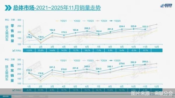 車市正進(jìn)入平穩(wěn)發(fā)展階段。12月8日,中國(guó)汽車流通協(xié)會(huì)乘用車市場(chǎng)信息聯(lián)席分會(huì)(以下簡(jiǎn)稱“乘聯(lián)分會(huì)”)發(fā)布的數(shù)據(jù)顯示,2025年前11個(gè)月零售2148.3萬輛,整體保持增長(zhǎng)。不過,今年11月車市零售量同比、環(huán)比均出現(xiàn)下滑?!?1月乘用車市場(chǎng)銷量環(huán)比出現(xiàn)下降,是比較少見的?!背寺?lián)分會(huì)秘書長(zhǎng)崔東樹認(rèn)為,今年上半年,我國(guó)乘用車市場(chǎng)銷量實(shí)現(xiàn)較快增長(zhǎng),下半年車市增長(zhǎng)需回到合理、穩(wěn)定的狀態(tài)。車市進(jìn)入平穩(wěn)期有利于市場(chǎng)長(zhǎng)期穩(wěn)定發(fā)展,預(yù)計(jì)今年零售將增長(zhǎng)5%。
