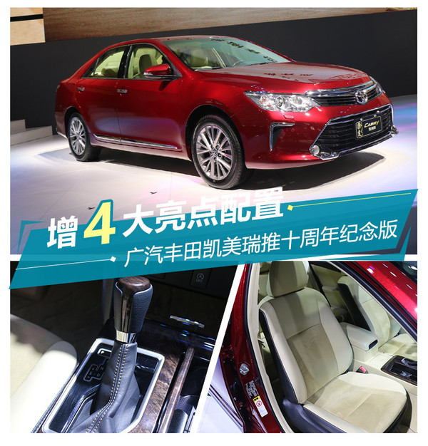 廣汽豐田凱美瑞自2006年登陸中國并實現(xiàn)國產(chǎn)以來,十年間這款車型在華累計銷量已突破150萬輛,并且是同級別車型中以最快速度完成這一目標(biāo)的。恰逢凱美瑞在華投產(chǎn)、銷售十周年之際,廣汽豐田在長春車展上發(fā)布凱美瑞十周年紀(jì)念版車型。相比現(xiàn)款凱美瑞,新車實現(xiàn)了4大配置升級,其中包括自動啟停、雙透鏡LED大燈在內(nèi)的多項細(xì)節(jié)提升,新車預(yù)計將在8月中旬到店上市。