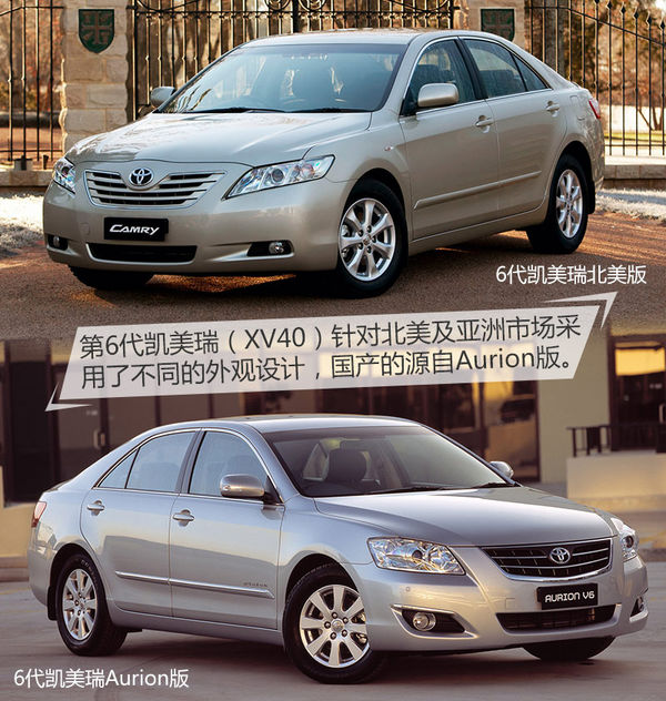 第6代凱美瑞(XV40)誕生于2006年,6月17日正式上市,由廣汽豐田進(jìn)行本土化生產(chǎn)。雖然是豐田的全球化車型,但是XV40針對北美及亞洲市場采用了不同的外觀設(shè)計。北美版的車燈更加“鋒利”更加年輕運動,而國產(chǎn)的凱美瑞則采用了更加符合東方審美的亞洲版造型,又被稱作Prestige版或Aurion版。