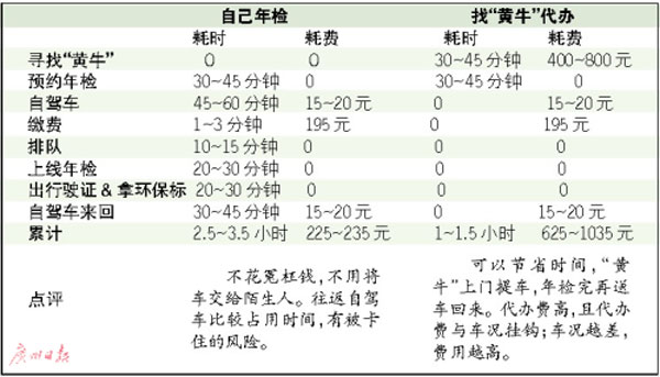 “老車”上線年檢,自己辦與找“黃牛”代辦,各自需要占用多少時(shí)間和多少支出?給“黃?!钡脑┩麇X,可不可以省下?