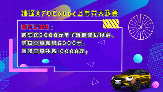 購車三重禮:購車送3000元電子流媒體后視鏡、信貸至高貼息6000元、置換至高補(bǔ)貼10000元。