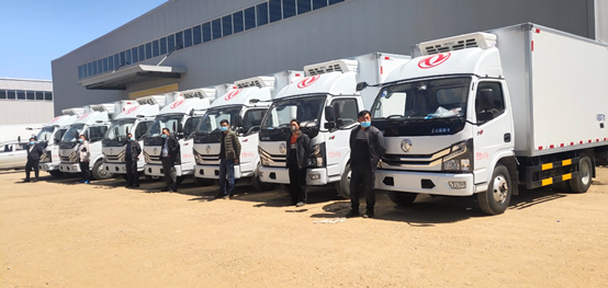 4月,97輛東風(fēng)多利卡冷藏車(chē)交付貴州