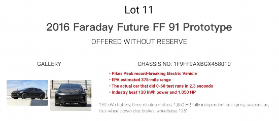 兩輛法拉第未來(lái)FF91原型車出現(xiàn)在拍賣網(wǎng)站上