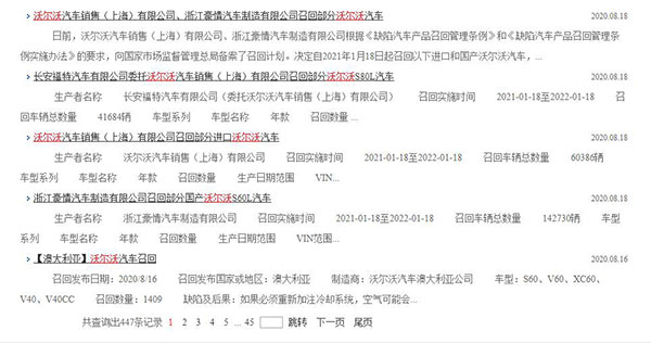 日前,沃爾沃汽車銷售(上海)有限公司,浙江豪情汽車制造有限公司根據(jù)《缺陷汽車產(chǎn)品召回管理?xiàng)l例》和《缺陷汽車產(chǎn)品召回管理?xiàng)l例實(shí)施辦法》的要求,向國(guó)家市場(chǎng)監(jiān)督管理總局備案了召回計(jì)劃。決定自2020年9月4日起召回以下車輛,共計(jì)135316輛。