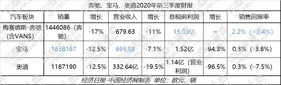 受中國市場(chǎng)強(qiáng)勁需求帶動(dòng),BBA汽車業(yè)務(wù)一改二季度的虧損、下滑,三季度各主要財(cái)務(wù)指標(biāo)均呈現(xiàn)明顯回升,息稅前利潤及銷售回報(bào)率等更是實(shí)現(xiàn)由虧損轉(zhuǎn)向盈利。對(duì)于四季度,BBA均預(yù)計(jì)仍將保持積極的增長(zhǎng)勢(shì)頭。然而,考慮到當(dāng)前全球疫情的蔓延趨勢(shì),以及脫歐等不確定因素,BBA全年業(yè)績(jī)將明顯低于上一年。