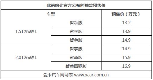 日前,愛卡汽車從相關(guān)渠道獲悉,哈弗神獸預(yù)計將于廣州車展上市,新車的預(yù)售價區(qū)間為13.2-16.9萬元。哈弗神獸搭載了1.5T和2.0T發(fā)動機(jī),在設(shè)計上采用了最新的家族式設(shè)計語言,無邊界格柵極具家族辨識度。神獸的內(nèi)飾同樣是科技感十足,新車配備了14.6英寸中控液晶屏+12.3英寸液晶儀表。