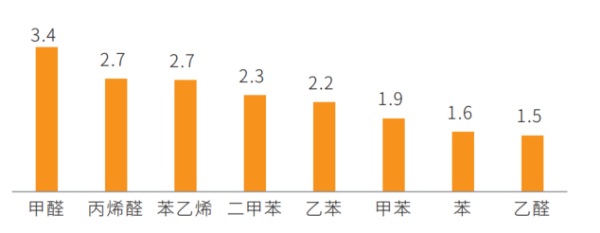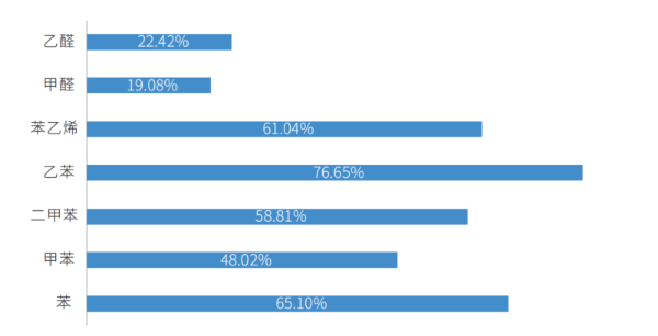 2022年度車內(nèi)空氣質(zhì)量測評結(jié)果顯示,常溫狀態(tài)下,除丙烯醛外,其余7種揮發(fā)性有機物均較2018-2021年有不同程度下降,一類致癌物甲醛和苯分別下降19.08%和65.10%,其余五種物質(zhì)也分別有22.42%至76.65%的下降。