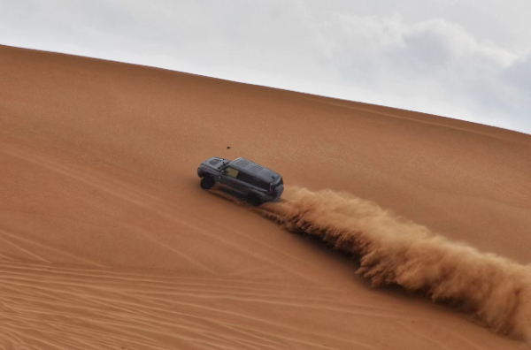 “快走沙、慢走水”是越野圈的一句經(jīng)典老話,也是無數(shù)越野玩家的經(jīng)驗(yàn)之談。在沙漠里,道路過于“松軟”,具有很多不確定性,車輪非常容易打滑甚至陷入沙坑,陷沙、翻車的情況屢見不鮮,只有快速通過才是硬道理,而要快速通行或是過坑、沖坡,必須依靠強(qiáng)悍的動(dòng)力、強(qiáng)大的四驅(qū)以及細(xì)膩的越野技術(shù)。猛士品牌猛士917基于M TECH猛士智能越野架構(gòu)開發(fā),純電版和增程版分別能輸出最大功率1000馬力和800馬力,采用兩擋變速箱,峰值輪邊扭矩更是超過16000牛·米,擁有超強(qiáng)暴發(fā)力。