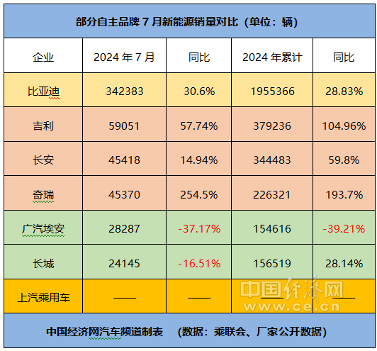 巧合的是,比亞迪、奇瑞和吉利在7月的銷量均實(shí)現(xiàn)大幅增長,并分列自主品牌的冠、亞、季軍;相比之下,長安和長城的銷量卻出現(xiàn)較大幅度的下滑,這也讓“自主五虎”的座次出現(xiàn)了不小的變化。