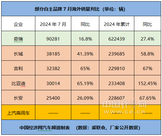 數(shù)據(jù)顯示,7月,長城、吉利、比亞迪和長安的海外銷量分別為38185輛、32382輛、30014輛、25400輛,同比分別增長41.39%、65%、65.19%、26.09%;前7個(gè)月的累計(jì)銷量分別為239685輛、229810輛、233408輛、228607輛,同比分別增長58.8%、67%、152.45%、67.65%。(中國經(jīng)濟(jì)網(wǎng)記者 王躍躍)
