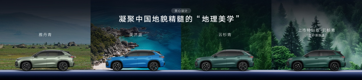 車身顏色上,全新探岳L開(kāi)創(chuàng)性構(gòu)建“地理美學(xué)”色系,以“6+1 色彩哲學(xué)”,凝聚中國(guó)地貌精髓,其中雅丹青和美濟(jì)藍(lán)均是大眾品牌中國(guó)區(qū)首次采用顏色。