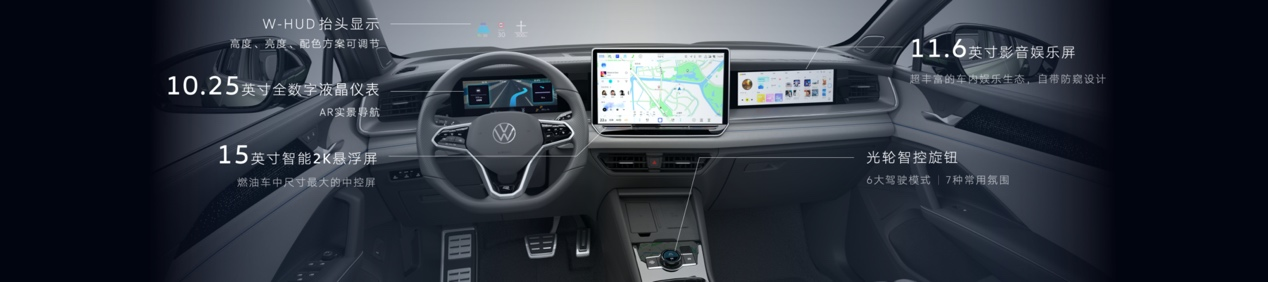 基于“好用”和“想用”的理念,全新探岳L 智能座艙以5+X多屏多模交互系統(tǒng)為核心。其中,“5”即5塊屏幕,包含了15英寸2K中控屏、11.6英寸副駕影音娛樂(lè)屏,搭配豐富的車內(nèi)娛樂(lè)生態(tài),靈動(dòng)又默契;另外,10.25英寸全數(shù)字液晶儀表,能實(shí)現(xiàn)AR實(shí)景導(dǎo)航,導(dǎo)航信息與實(shí)景路面融合,讓駕駛更加專注;抬頭顯示HUD,安全好用;可觸摸光輪智控旋鈕,調(diào)節(jié)音量和切換駕駛模式,更加便捷。