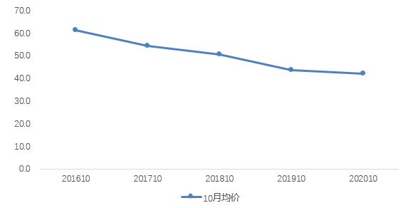 貝殼研究院數(shù)據(jù)顯示,10月貝殼重點城市租賃市場成交量環(huán)比持續(xù)下降,租金水平同比四連降達到近五年最低值。從成交量來看,10月租賃成交量環(huán)比下降10.5%,延續(xù)9月的下降態(tài)勢。從租金水平來看,2016-2020年的10月租金四連降,達到近五年最低。2020年10月重點城市平均月租金為41.8元/平米,環(huán)比下降0.6%,同比下降4.0%。
