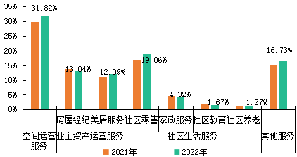 2021-2022年百強(qiáng)企業(yè)社區(qū)增值服務(wù)分類及占比情況
