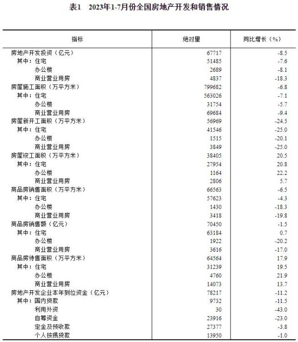 國(guó)家統(tǒng)計(jì)局:2023年1—7月份全國(guó)房地產(chǎn)市場(chǎng)基本情況