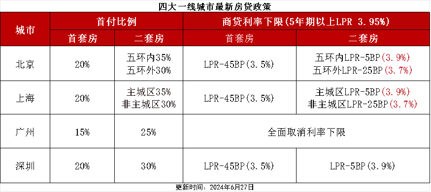 本次北京住房信貸政策調(diào)整后,四大一線城市中,北京、上海、深圳首套和二套最低首付比例降至20%和30%,體現(xiàn)了住房信貸政策的差別化。不過,業(yè)內(nèi)人士也表示,上述三個(gè)城市的利率水平最低3.5%,二套3.7%和3.9%或仍有下降的空間。