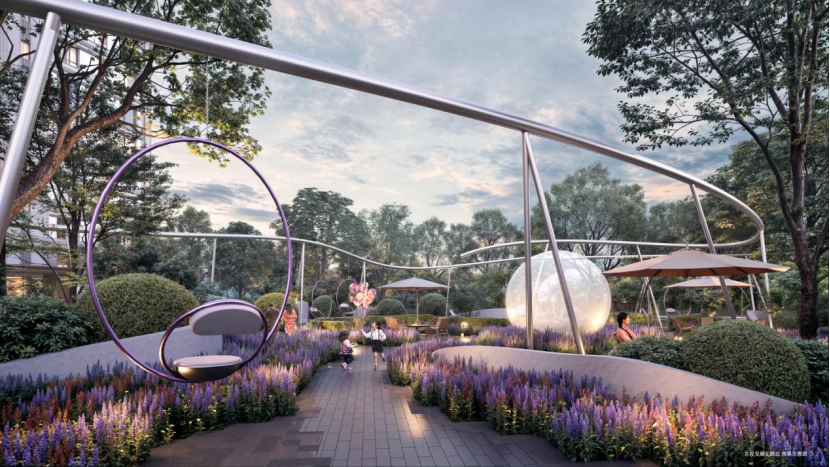 其景觀(guān)園林以“風(fēng)谷之境”為主題,打造一系列具有動(dòng)感的主題場(chǎng)景。像三期南側(cè)將建設(shè)一個(gè)“風(fēng)速運(yùn)動(dòng)場(chǎng)”,周邊種植高大喬木,業(yè)主可以在綠蔭下享受運(yùn)動(dòng)帶來(lái)的舒適。英式花園“風(fēng)吟花園”則配備了秋千、卡座等,讓孩子們的歡樂(lè)和笑聲在綠植花徑中暈開(kāi)。地勢(shì)高、低容積率,疊加較大樓間距,北熙區(qū)三期產(chǎn)品的布局在保障樓宇之間采光、通風(fēng)的同時(shí),為業(yè)主提供出門(mén)可親享空中綠島的自然生活體驗(yàn)感。