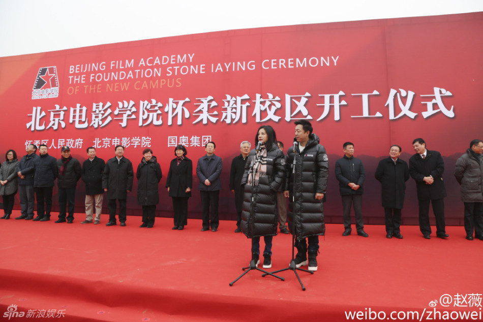 12月25日,北京電影學院懷柔新校區(qū)開工儀式舉行。趙薇、黃渤作為資深校友現(xiàn)身奠基儀式,穿羽絨服鏟土。趙薇贊“地杰人靈之地!”