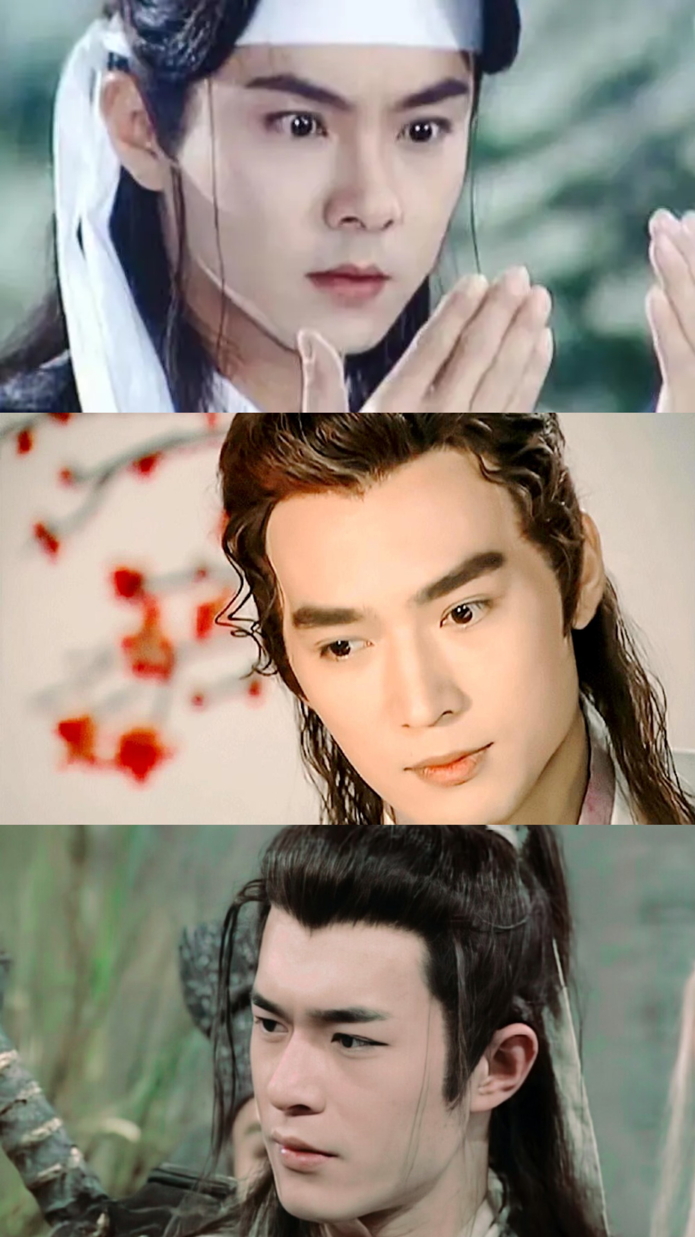 在古裝劇《烈火如歌》《天雷一部之春花秋月》《三生三世十里桃花》里,男演員的造型從背后看如出一轍。 如此敷衍、拉胯的妝造,讓男演員們有苦說(shuō)不出。演員劉學(xué)義就曾看不慣自己的丑頭套,在粉絲發(fā)布的吐槽微博下面偷偷點(diǎn)贊以示反抗。 試問(wèn),劇方能否嘗試創(chuàng)新,別讓修行萬(wàn)年的神仙們都統(tǒng)一發(fā)型呢?又或者說(shuō),做出質(zhì)感好的假發(fā)套很難嗎? 答案當(dāng)然是否定的,畢竟過(guò)去的“古裝男神”們留下的經(jīng)典造型,仍被現(xiàn)在的網(wǎng)友們津津樂(lè)道。