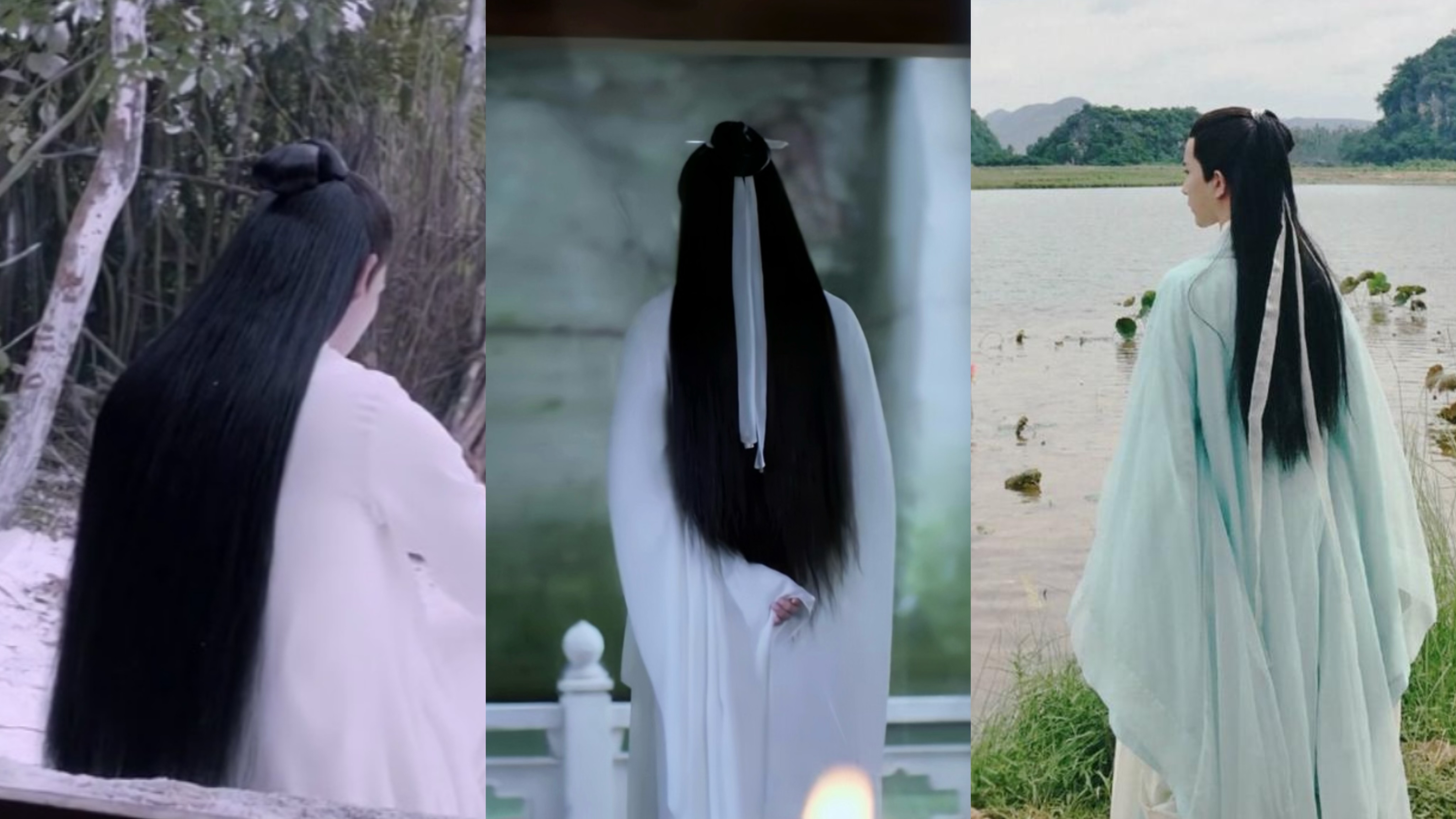 從左到右為:《武神趙子龍》《楚喬傳》《與鳳行》中林更新的造型。 網(wǎng)友辣評(píng):兜兜轉(zhuǎn)轉(zhuǎn)又是“它”,丑丑的、很安心。 近年來(lái),相比古偶女演員們發(fā)型的不斷更新,男演員們的造型還停留在1.0時(shí)代——清一色的高顱頂、低發(fā)際線(xiàn)、糊臉鬢角、龍須貼臉?,F(xiàn)代人的發(fā)際線(xiàn)有多高,古偶里男演員們的發(fā)際線(xiàn)就有多低,甚至和女主角同框時(shí)兩人仿佛不在一個(gè)“圖層”上。 更荒謬的是,千篇一律的假發(fā)套,導(dǎo)致古偶劇男主們有時(shí)僅憑背影都分不清誰(shuí)是誰(shuí)。