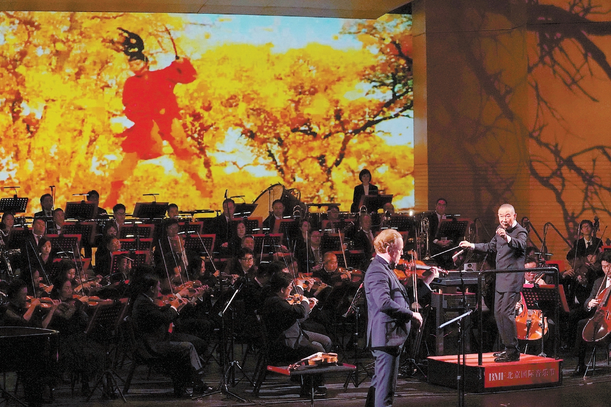 譚盾指揮《武俠三部曲》交響音樂會(huì)劇照。北京日?qǐng)?bào)記者 方非攝
