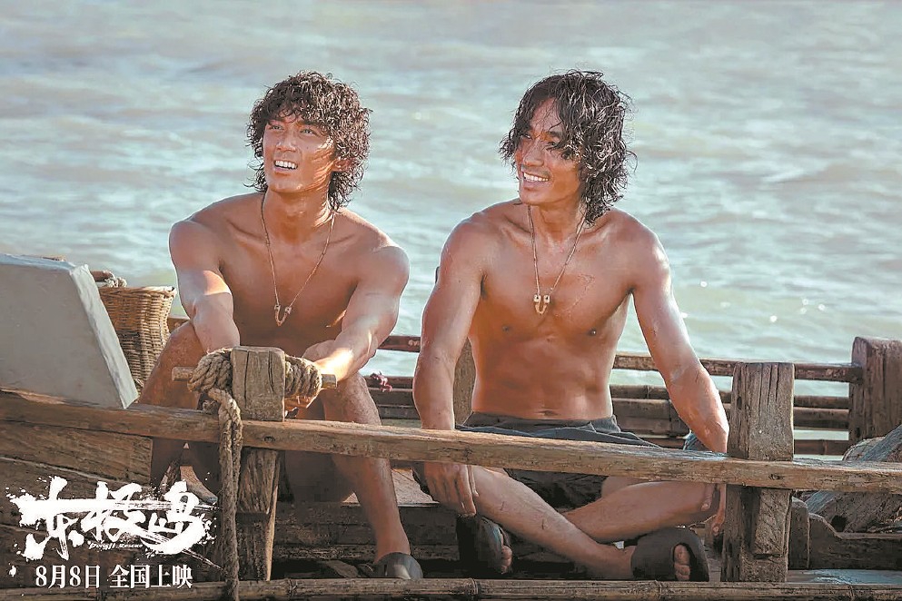 《東極島》劇照,朱一龍(右)飾演阿赑,吳磊飾演阿蕩。兄弟倆從最初為生存出海,到目睹日軍暴行后主動(dòng)承擔(dān)責(zé)任,最終成為救援主力,主打“平凡人變英雄”的成長線。