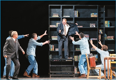 這對(duì)柯雅各是個(gè)難題。雖然他從小喜愛(ài)表演,但他平時(shí)主要從事企業(yè)管理,此次是他首度出演大型話劇。他由衷感謝張國(guó)立,因?yàn)閺垏?guó)立每天必到排練場(chǎng),從一個(gè)眼神到一場(chǎng)對(duì)手戲,仔細(xì)指導(dǎo)他,經(jīng)常親自示范?!澳苷崭麑W(xué)習(xí),如同在上一堂大師課?!笨卵鸥髡f(shuō),“演話劇后我才理解,這部劇最大的亮點(diǎn)不是安迪越獄成功、解救了自己,而是他用自己身上的希望之光照亮他人。導(dǎo)演也是在身體力行地照亮我們?!?/p>