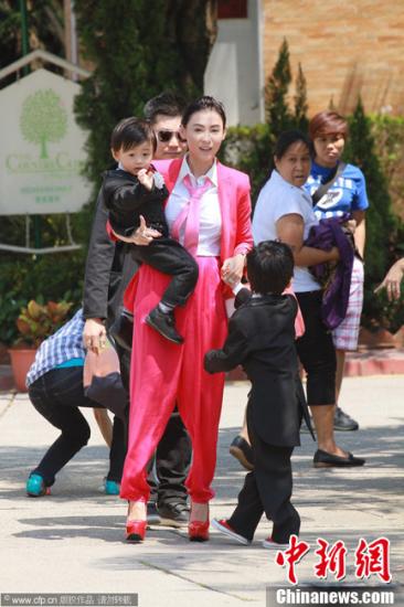 資料圖:張柏芝攜同兩個(gè)兒子Lucas(謝振軒)和Quintus(謝振南)。圖片來源:CFP視覺中國