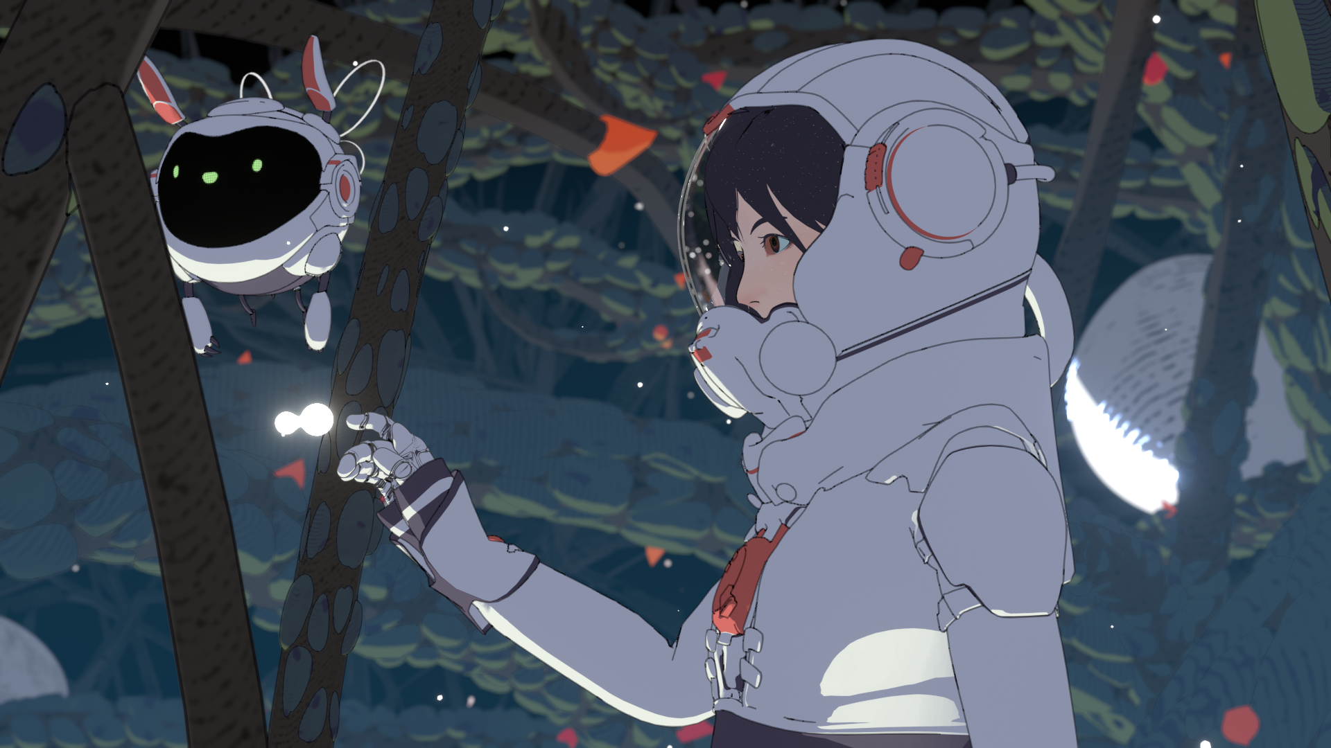 如何在宇宙的浪漫遐想中,探索人與自然神秘又深刻的聯(lián)系?廣美繪畫藝術(shù)學(xué)院的畢業(yè)生尹嘉琳的動畫作品《循星》提供了一個瑰麗又奇幻的視角。故事在一個星系中的兩顆星球之間展開,一名叫“卡西尼”的旅行者和她的機(jī)器人“惠更斯”踏上了一段不同尋常的太空漫游之旅,恢宏宇宙中的景象和遺跡,充滿未知的冒險元素,在這趟旅程中漸次展開。